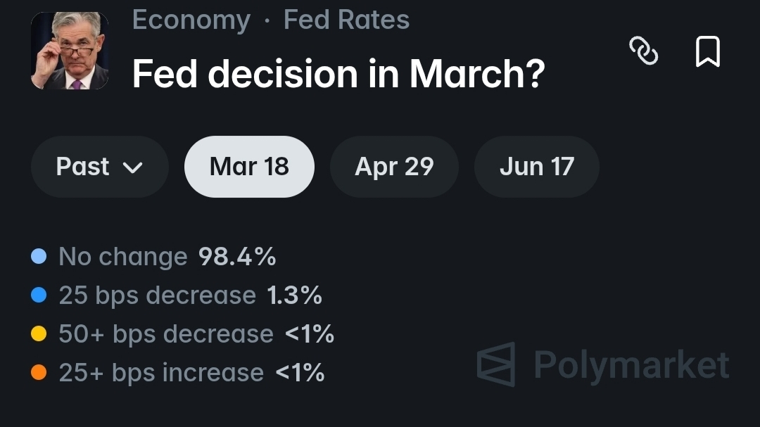 ✅ Consenso Esmagador: 98,4% de probabilidade para a manutenção das taxas ("No Change"). A dúvida que existia há alguns meses evaporou.