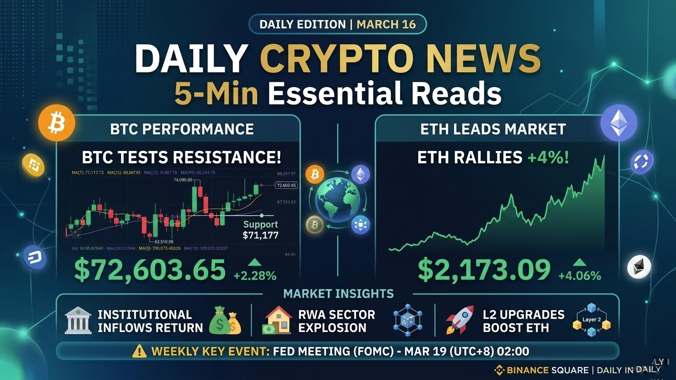 BTC ($72,603): 目前价格已成功站上 MA7($71,177)和 MA25($68,607)关键均线之上,MACD 绿柱开始放量。目前上方最近阻力位在 $74,050。若能有效突破并企稳,将打开新一轮上涨空间。