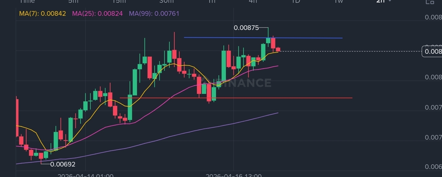 ✅ Resistance (رکاوٹ): اوپر کی طرف $0.0875 ایک سخت دیوار بنی ہوئی ہے۔ اگر کینڈل اس کے اوپر کلوز ہوتی ہے، تو ہمیں ایک بڑی ریلی دیکھنے کو مل سکتی ہے۔