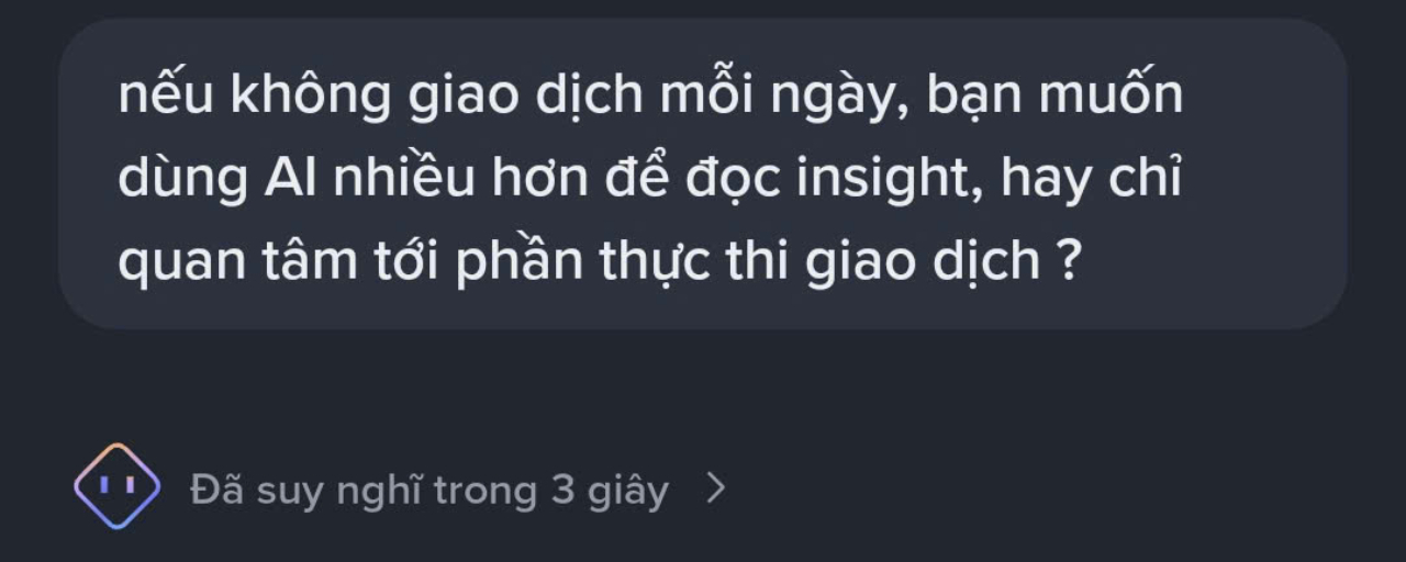 Nếu không giao dịch mỗi ngày, bạn có muốn dùng AI để giữ nhịp với thị trường, hay bạn chỉ thấy AI thật sự đáng giá khi nó tham gia trực tiếp vào giao dịch?