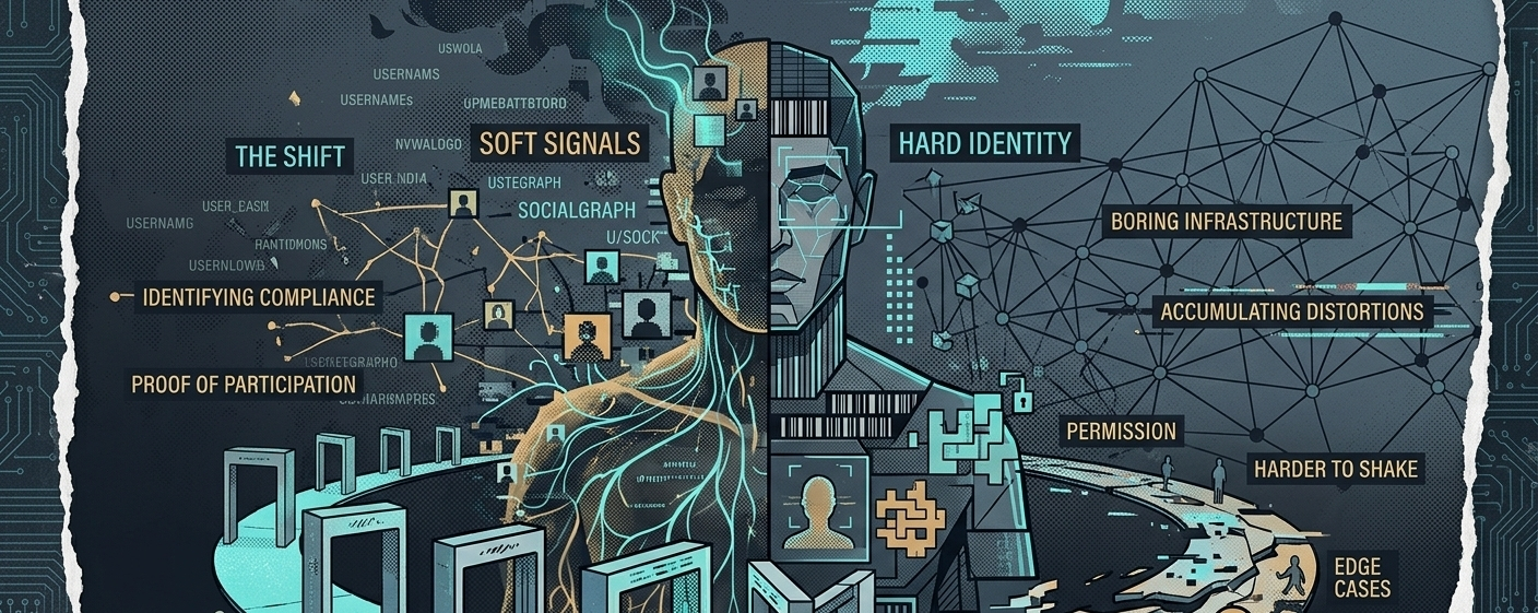Because the system isn’t really identifying people. It’s identifying compliance. It rewards those willing to pass through whatever gate is set — scan this, verify that, link here. And over time, that behavior starts to look like identity itself. Not who you are, but what you’ve done to be accepted.