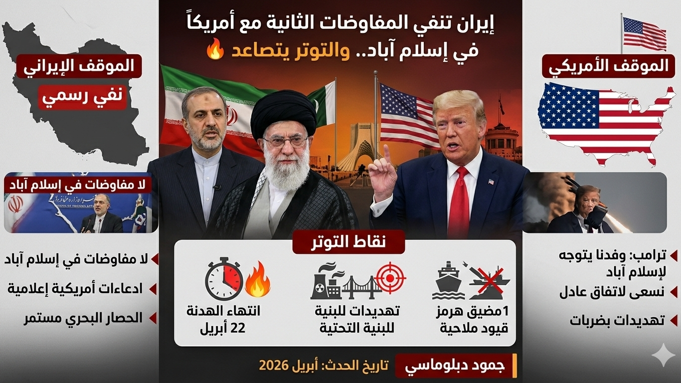 في تطور سريع و مهم، نفت إيران اليوم وجود أي جولة مفاوضات ثانية مع الولايات المتحدة في إسلام آباد، مؤكدة أن المحادثات تواجه عقبات كبيرة.