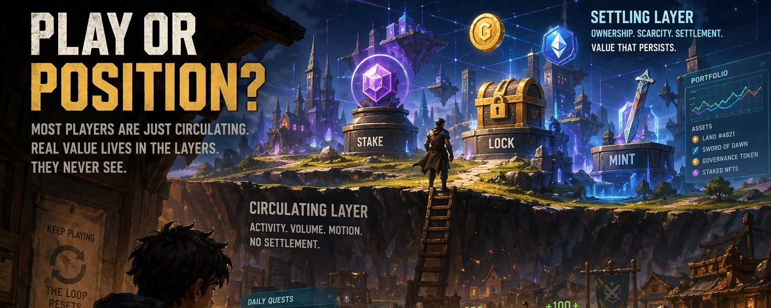 The uncomfortable version of this is that the game is not neutral about where you operate inside it. Two players can spend identical hours. One stays in the circulating layer, active, consistent, numbers always moving. The other steps occasionally into the parts that settle, that persist, that connect outward to something with a market behind it. The gap between those two players doesn't announce itself. It just accumulates quietly underneath.