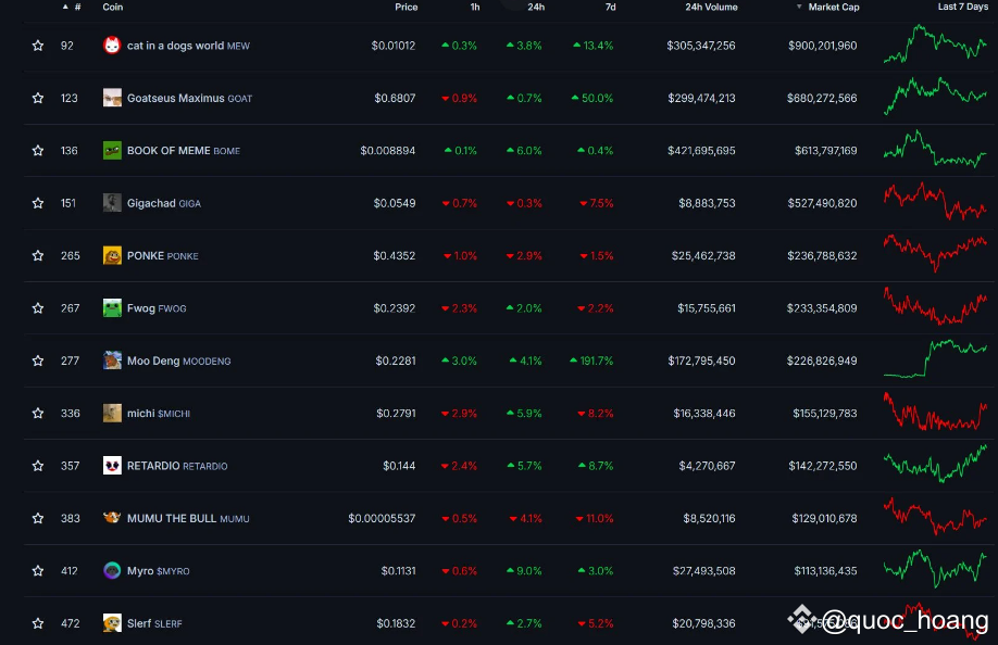 Các dự án memecoin Solana khác như MEW, BOME, MOODENG, MYRO và SLERF cũng ghi nhận đà tăng trong giai đoạn này.