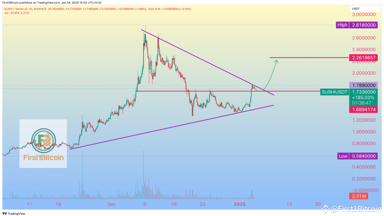 #SUSHI is testing a key resistance zone in a descending wedge pattern! If it breaks above $1.79, the next major target could be $2.26. 🚨 A confirmed breakout may lead to a strong bullish rally.