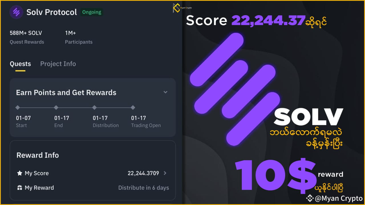 Earn Rewards: Based on your final score, you'll be rewarded with SOLV tokens, which will be distributed directly to your Binance Spot Account.