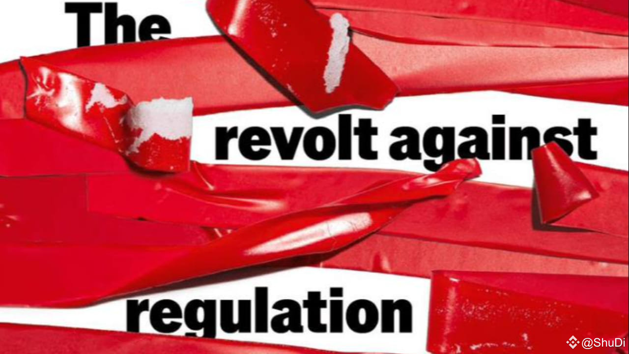 Обложка журнала The Economist за 1–7 февраля 2025 года имеет заголовок "The revolt against regulation" (Перевод: "Бунт против регулирования"). На фоне изображены порванные красные ленты, что символизирует сопротивление бюрократии и избыточному государственному контролю.