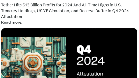1️⃣ Tether Reports $13 Billion In Net Profits For 2024 💰