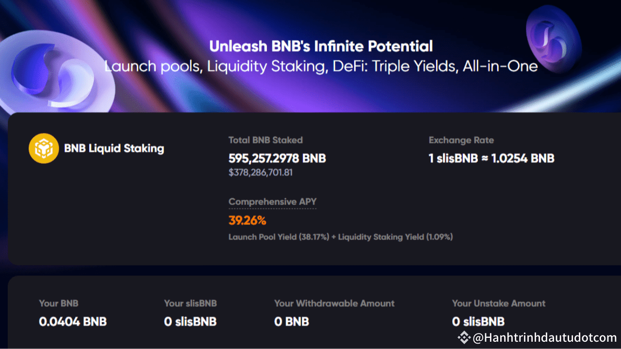 - B2: với BNB vào listadao https://lista.org/liquid-staking/BNB kết nối ví và Stake BNB để nhận slisBNB (APY 39%)