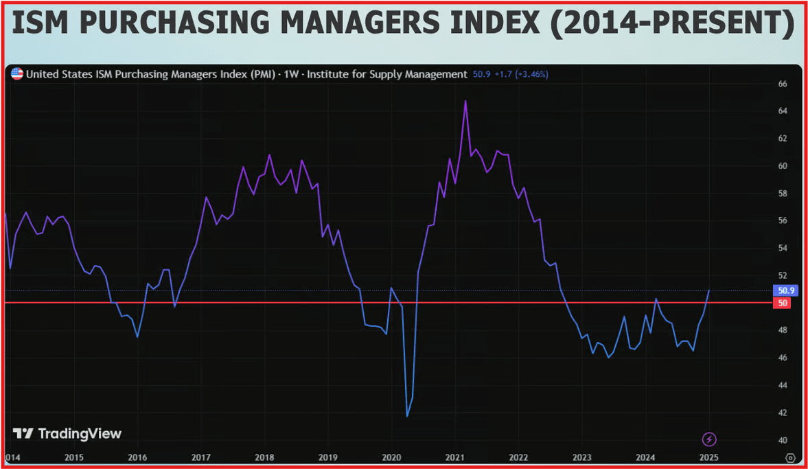 Here’s the kicker: once the ISM breaches 50, it’s usually a sign that altcoin season is on the horizon. And guess what? It just did for the first time in about a year. 🎉