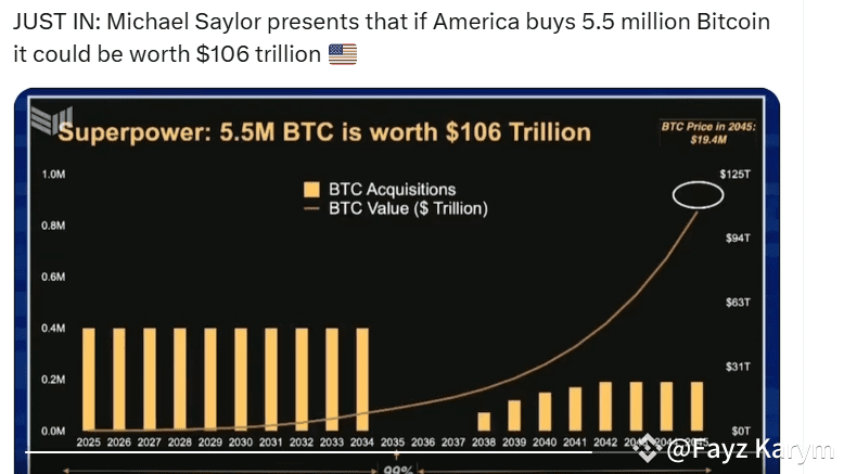 At the same forum, MicroStrategy Chairman **Michael Saylor** outlined how the U.S. could benefit from a strategic Bitcoin reserve. He projected potential earnings of **$106 trillion** if the U.S. adopts a disciplined, long-term Bitcoin acquisition strategy.
