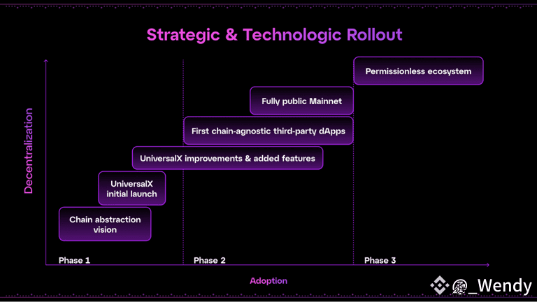 ⇢ Permissioned Ecosystem (Q1 2025): Focus on building core apps like UniversalX—a chain-agnostic Mainnet dApp for cross-chain trading. Plans to launch two more chain-abstraction apps for key use cases.