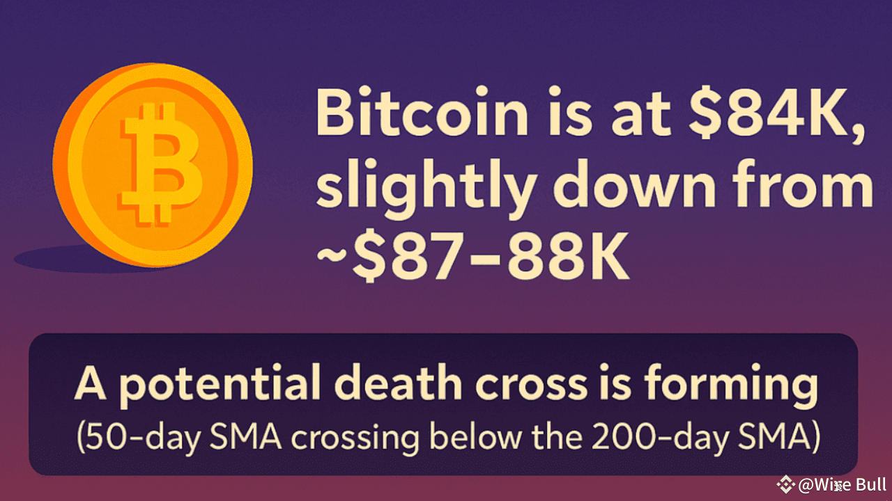 Bitcoin is at ~$84K, slightly down from ~$87–88K.