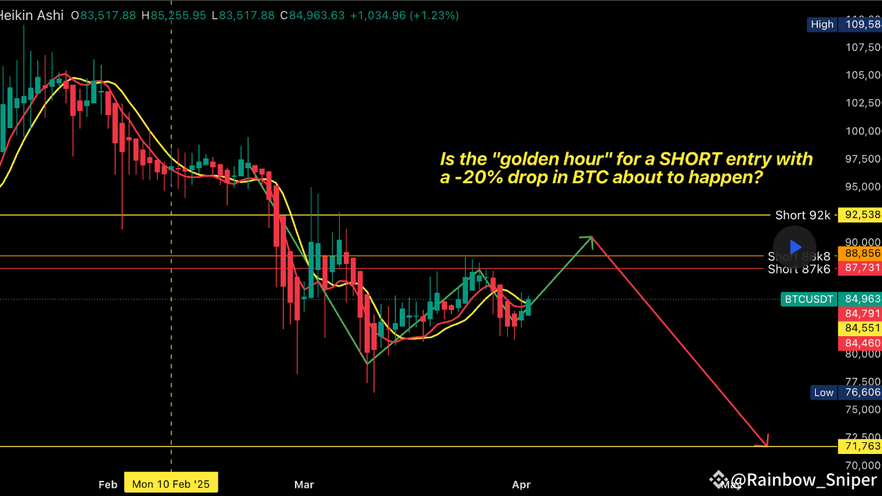 Following my detailed BTC April analysis, which mapped out monthly, daily (D1), and weekly (W) timeframes, I’m now providing a more refined analysis. The previous post offered a broad framework but lacked precision for actionable steps. Today’s focus is: "The Golden Hour for BTC’s SHORT Point – A 20% Value Drop?"