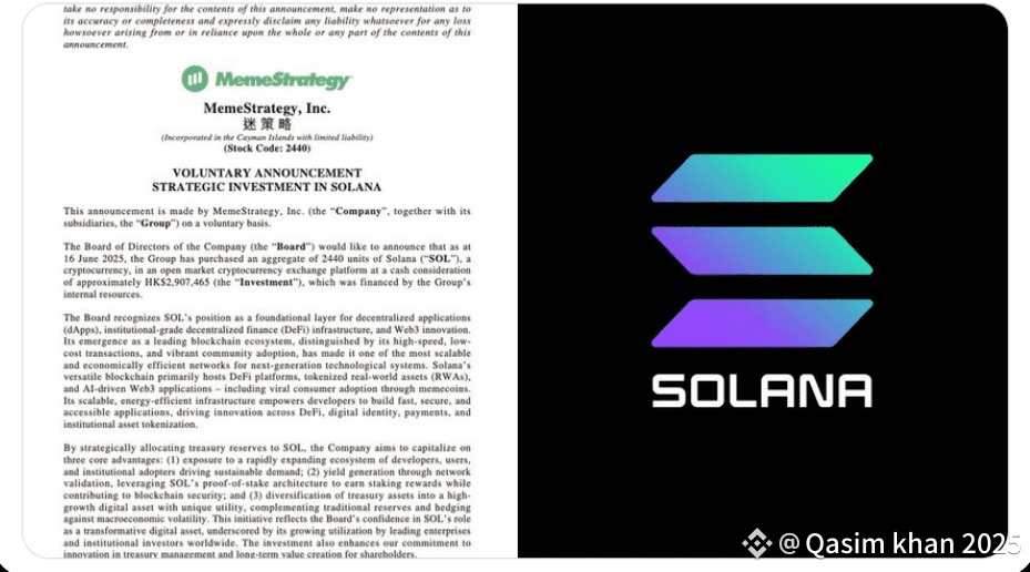 • Market Signal: By entering SOL, MemeStrategy signals openness to Layer‑1 upside, expanding beyond BTC-centric treasury models.