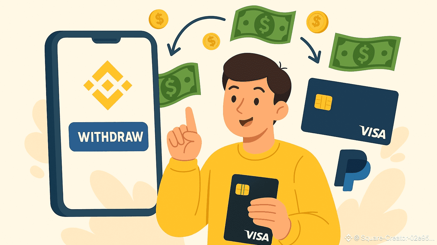 🔸 الطريقة الأولى: بيع العملات وتحويلها مباشرة عبر P2P إلى فيزا أو بايبال