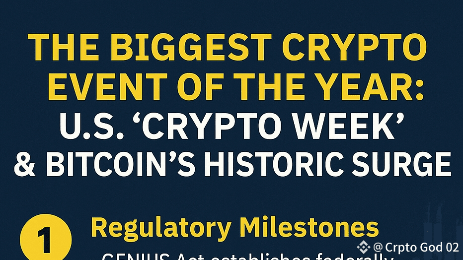 “Crypto Week” marks a turning point. For the first time, U.S. lawmakers are actively engaging with crypto—not just regulating it, but integrating it into the financial mainstream. Paired with Bitcoin’s climb past $120K, this is a powerful narrative of legitimacy and momentum.