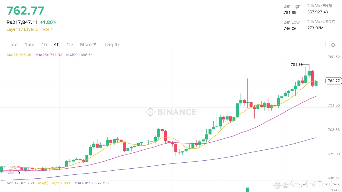 - Thin asks above: $762.78 (4.813 BNB) → Easy breakout potential if bids hold.