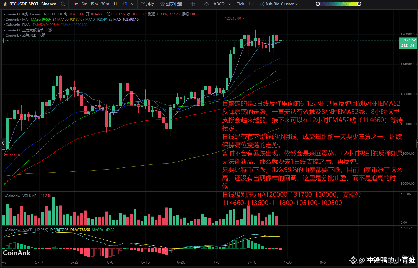 日线级别压力位120000-131700-150000,支撑位114660-113600-111800-105100-100500