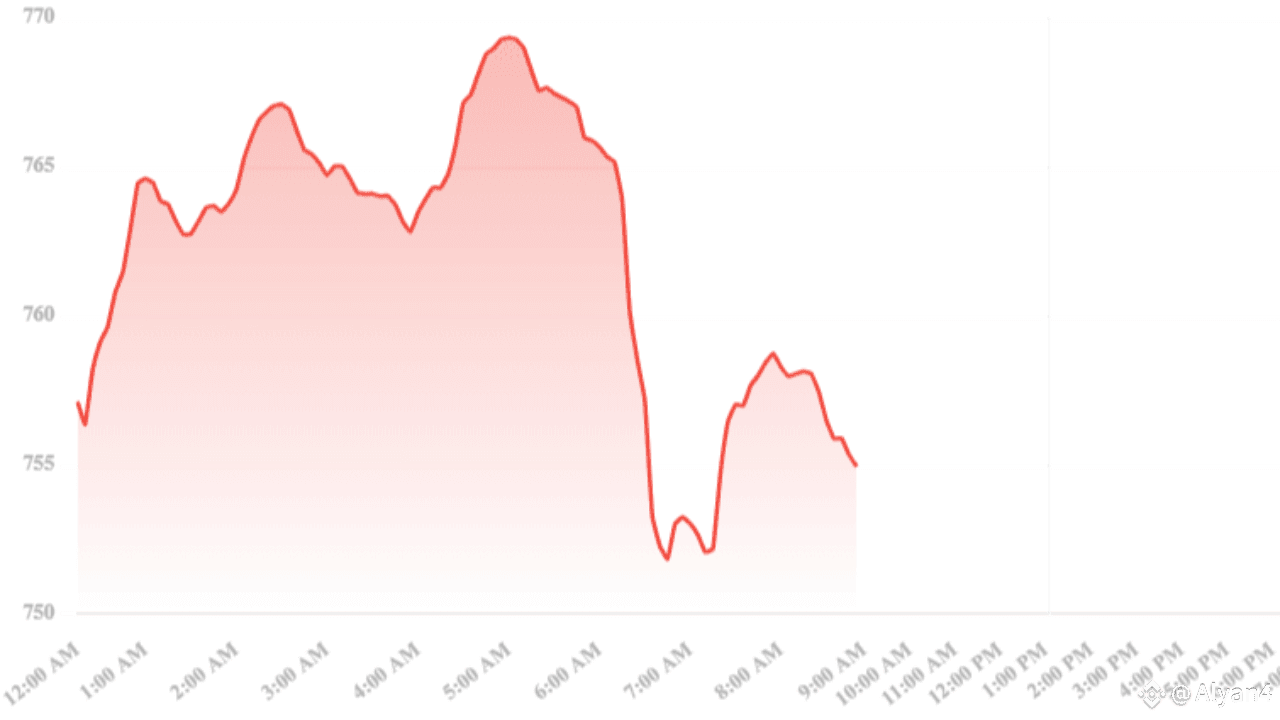 Price: Approximately $755 USD, down about 1–2% in the past 24 hours depending on the source. CoinMarketCap and other aggregators report between $758–759, while Coinbase and Kraken show $763–764 CryptoRank+15CoinMarketCap+15Mitrade+15.