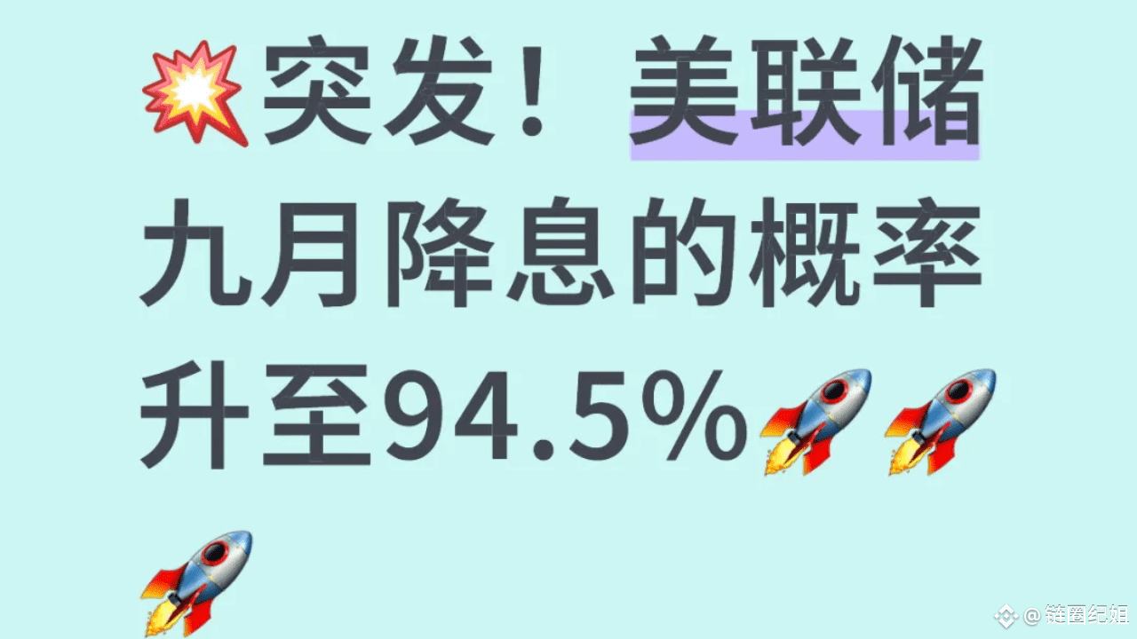 CME FedWatch Tool 数据显示,9 月议息会议降息 25 个基点的概率已达94.4%,维持利率不变的概率仅 5.6%。这一预期较 7 月会议后的 45% 大幅跃升,主要受以下因素驱动:
