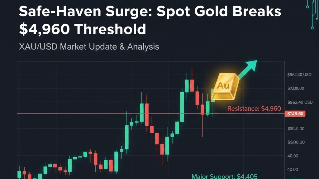 The precious metals market is witnessing a historic rally as Spot Gold (XAU) surged past the $4,960 per ounce mark today, February 6, 2026. The move represents a significant recovery following a period of extreme volatility earlier this month, as investors double down on "safe-haven" assets amid a complex global macroeconomic backdrop.