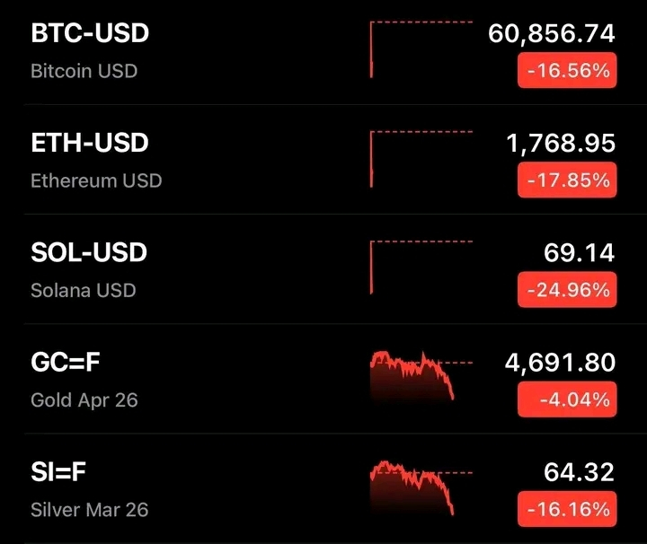 الكريبتو (سقوط الـ 50%): هوى البيتكوين ليمس حاجز الـ 60,000 دولار، وهو ما يمثل تراجعاً بنسبة 50% تقريباً عن قمته التاريخية في نوفمبر الماضي (126 ألف دولار).