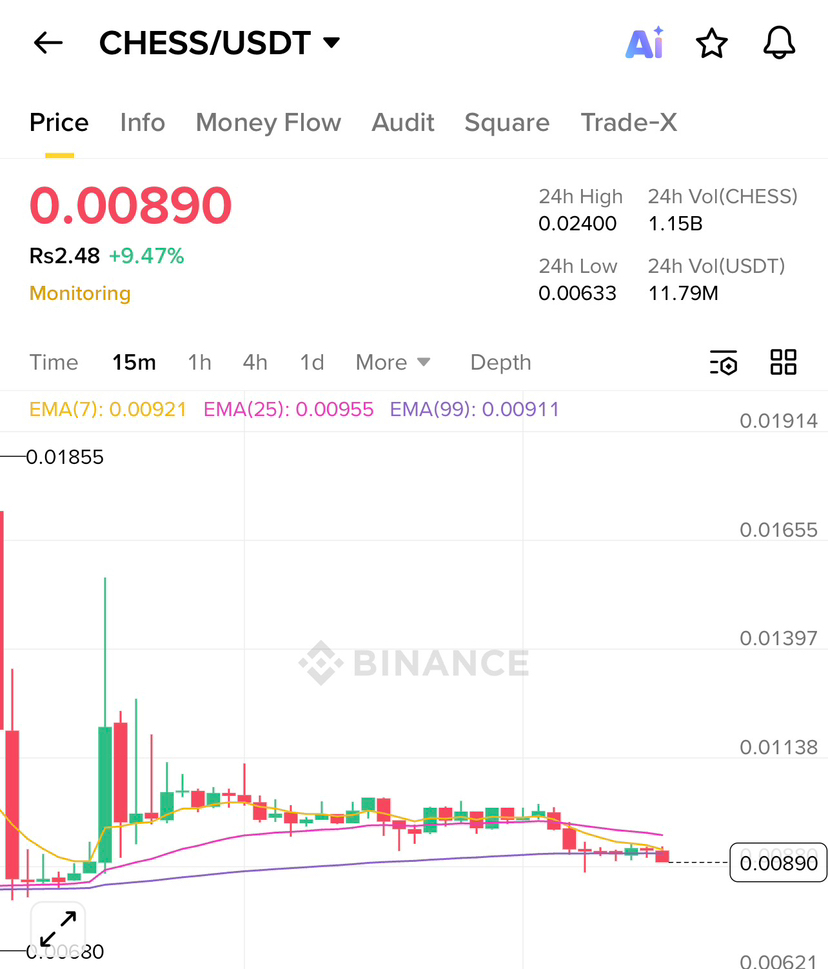CHESS is holding around the 0.0089 zone, showing resilience after recent volatility 🧠Price is hovering near key EMAs, signaling indecision and tight consolidation ⏳The sharp spike earlier grabbed attention, but follow-through cooled fast 🔥➡️😮💨Volume is thinning, hinting traders are waiting for the next clear signal 👀