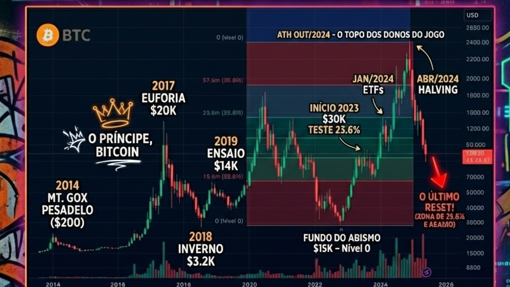 2017 - O Delírio Coletivo: O ano que o porteiro te perguntou como comprava BTC. Quase $20k! A ganância tava tão alta que ninguém viu o abismo.