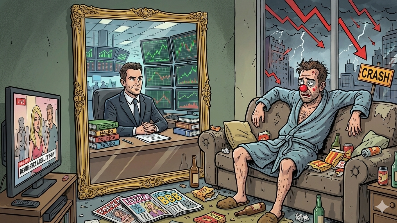 Para de procurar um guru. Para de procurar um culpado no governo. O culpado pelo seu portfólio estar no vermelho é o tempo que você passou se entretendo em vez de se intelectualizar. A vida medíocre é uma escolha diária baseada na sua acomodação.