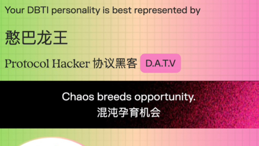 今天发现了一个十六型人格测试,跟生活里测MBTI好像,我测出来的 DBTI 是 D-A-T-V。