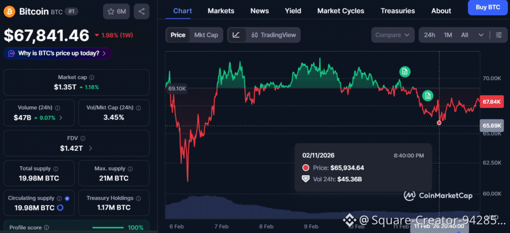 أيضًا، في اليوم نفسه، تم تداول البيتكوين بسعر منخفض يقل عن 66,000 دولار. حاليًا، أثناء كتابة هذا المقال، ارتفع سعر البيتكوين بنحو 1.23% ويتداول عند 67,841 دولارًا؛ ولكنه لا يزال منخفضًا بنحو 1.98% خلال الأسبوع الماضي، وبأكثر من 26% خلال شهر.