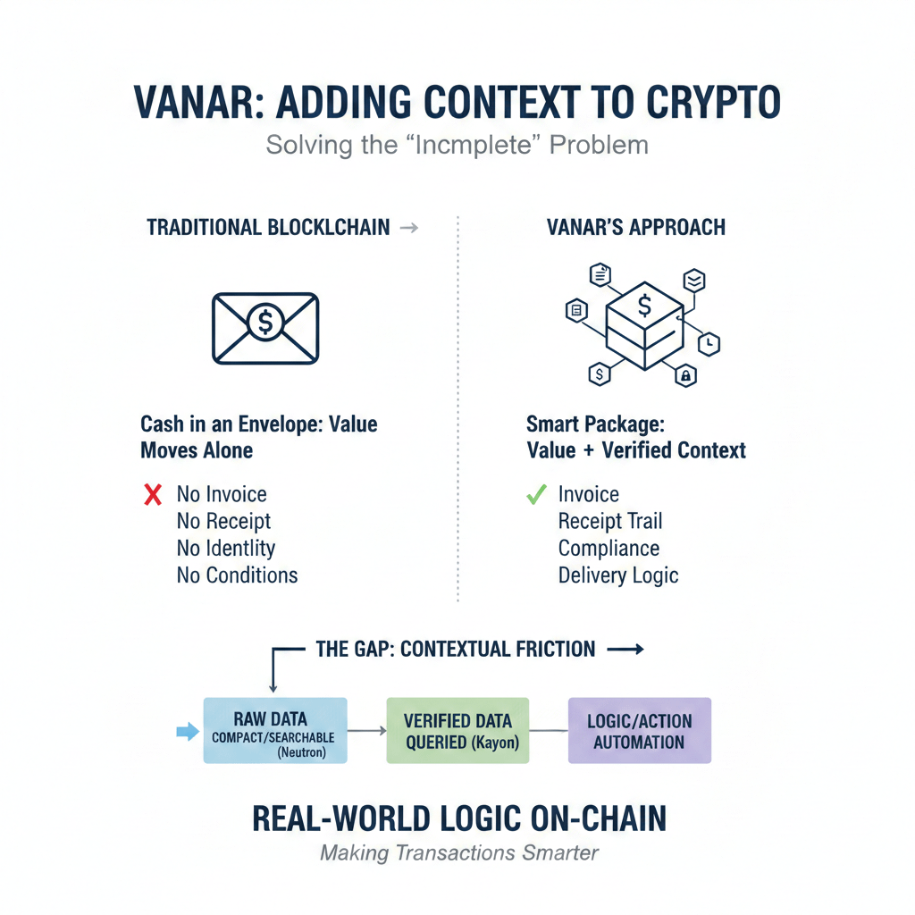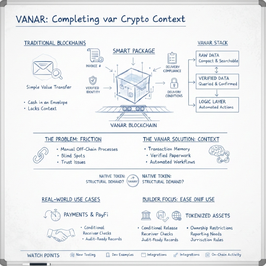 What Vanar is trying to build looks more like a smart package that carries its own verified paperwork. Not just the funds, but the proof, the conditions, and the rules that explain the transaction.
