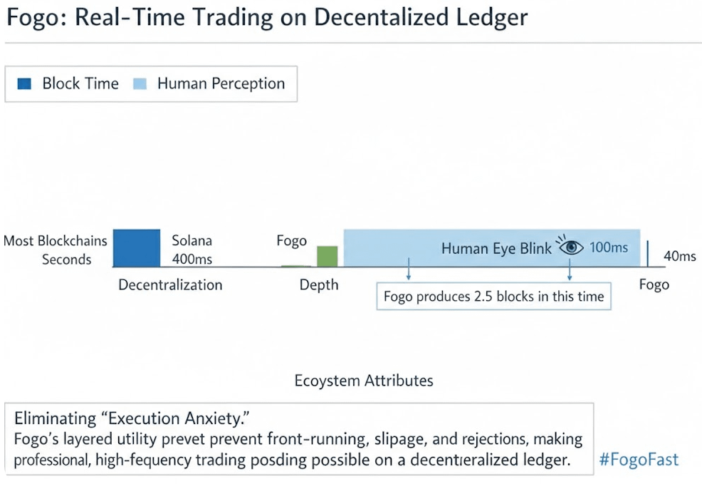 To put that in perspective: the human eye takes about 100ms to blink. Fogo produces two and a half blocks in that time. This isn't just a technical flex; it’s a mission to eliminate "execution anxiety"—that agonizing wait where a trader wonders if their order will be front-run, slipped, or rejected because the market moved while the chain was "thinking."