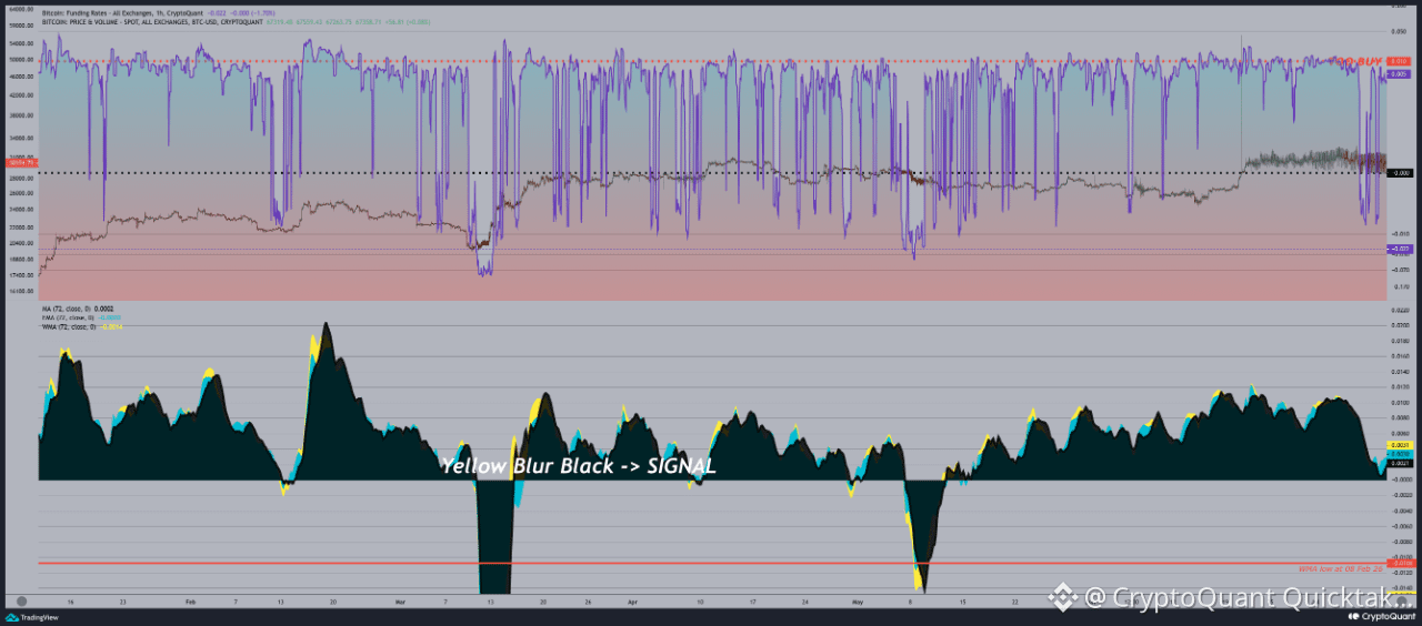 The market is currently observing a gradual recovery in funding rates, which recently dipped to levels reminiscent of the significant contractions seen on December 18, 2022, March 11, 2023, and May 8, 2023. This trend is being closely monitored via the 72-hour moving averages-specifically the WMA, EMA, and MA - which highlight the depth of the sentiment shift. While price action appears to be consolidating within a horizontal range following the aggressive downside volatility observed since February, the current technical structure suggests that a sustained recovery may require further time to fully materialize.