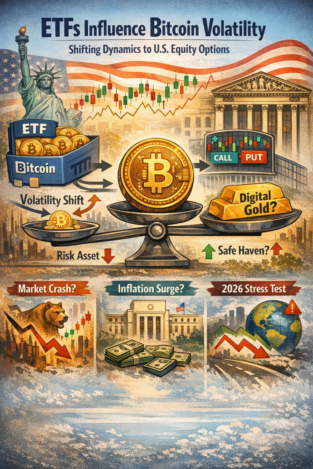 Exchange-Traded Funds (ETFs) tied to Bitcoin are reshaping market dynamics, with analysis suggesting that a significant portion of Bitcoin’s volatility is now migrating toward options markets in the United States. This shift means Bitcoin is no longer operating in isolation as it once did. Instead, institutional capital flowing through ETFs is linking its price behavior more closely to traditional financial instruments. The implication is profound: Bitcoin’s movements are increasingly influenced by risk sentiment and hedging strategies used by large investors. Rather than being driven solely by crypto-native speculation, its volatility is now intertwined with broader market structures.