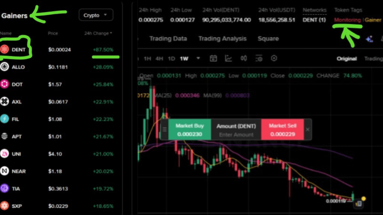 Noticing DENT at the top of Binance’s gainers list with a Monitoring Tag is more than a curiosity—it is a live example of why reading beyond the percentage change matters.