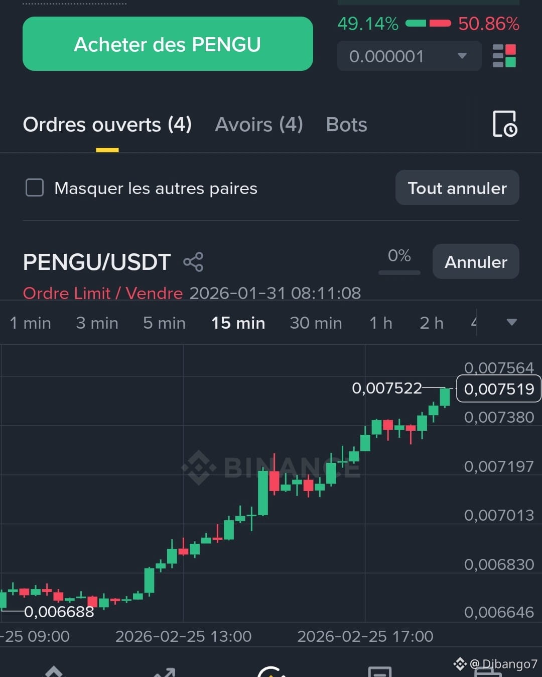 $PENGU a repris son endurance une hausse marquante de plus de 13℅, avec une cassure bien visible