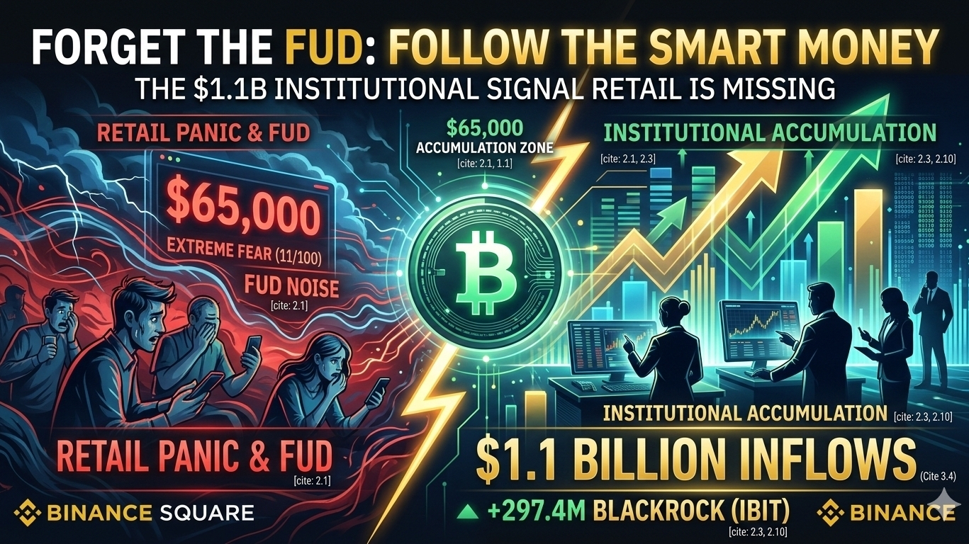 The disconnect is staggering. Retail traders are facing "Extreme Fear" and selling. Meanwhile, institutions are buying the $65,000 level aggressively.