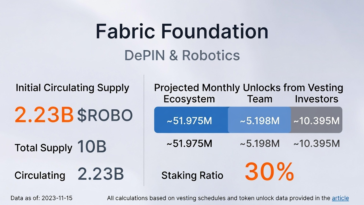 $ROBO is the utility and governance token powering Fabric's ecosystem. With a fixed total supply of 10 billion tokens, it has no inflation. At token generation event (TGE) in February 2026, the initial circulating supply was 2.23 billion (22.3%), calculated from unlocked portions across allocations.