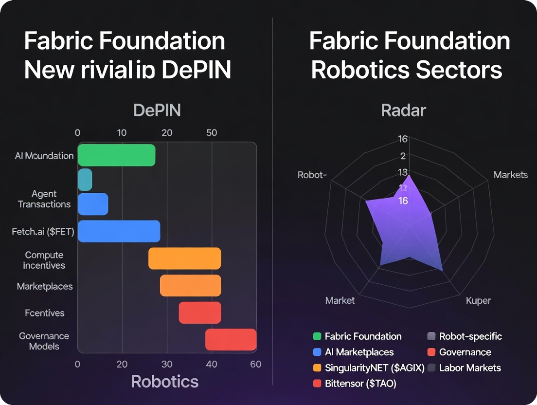 In the DePIN and robotics space, Fabric competes with projects blending AI, blockchain, and physical infrastructure. Fetch.ai ($FET) focuses on autonomous economic agents, enabling machine-to-machine transactions but lacks Fabric's emphasis on physical robot governance. SingularityNET ($AGIX) builds decentralized AI marketplaces, which could overlap in skill development for robots, but it's more software-centric. Bittensor ($TAO) incentivizes AI model training via decentralized compute, potentially complementing Fabric's data coordination for robot learning.