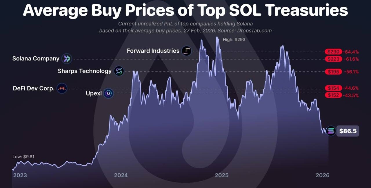 If SOL rallies back toward $150–$200, those areas may act as heavy supply as treasuries approach cost basis.