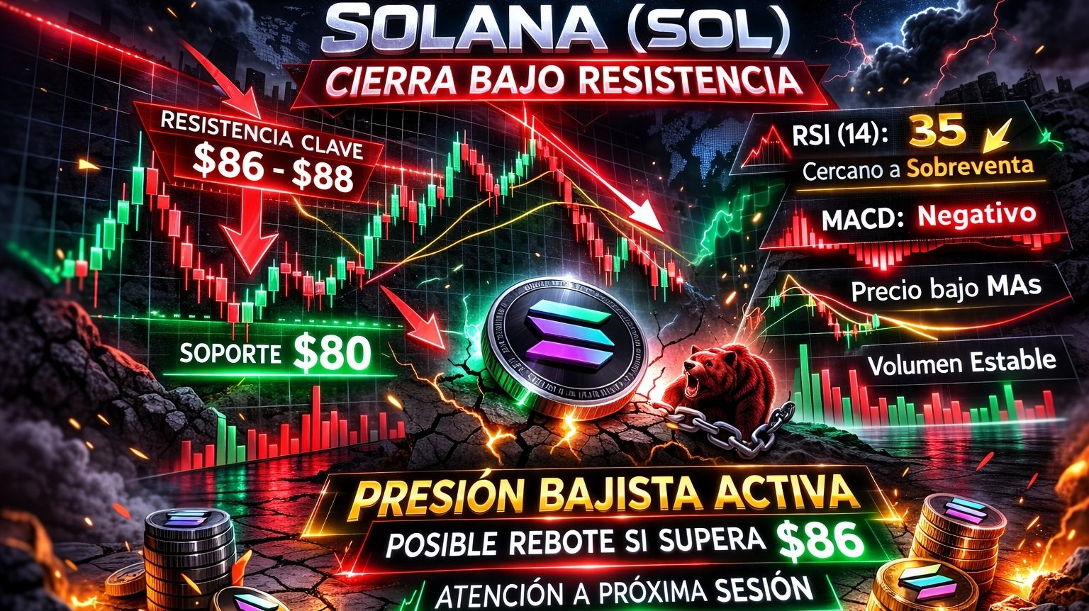 $SOL cierra la sesión manteniéndose bajo zona de resistencia clave, sin lograr ruptura con volumen de confirmación.