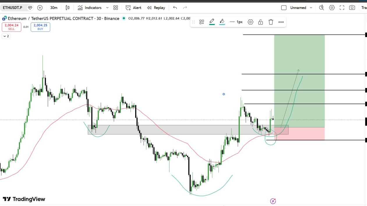 secara outlook, terlihat potensi inverse HnS pattern saat ini. bisa instant entry kalau yg mau, atau tunggu area abu-abu (sedikit turun dari area sekarang)