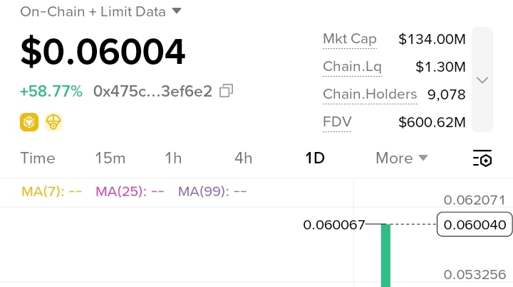 Right now the chart is pure insanity. Price sitting at $0.06004, up +58.77% in a day. Market cap $134M, FDV $600M, and the 1D candle is a monster green spike straight from the 0.02 area with ridiculous volume (over 11 billion tokens). That kind of move on launch week with real liquidity behind it? Yeah, the market is paying attention.