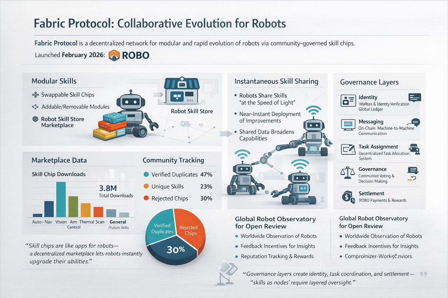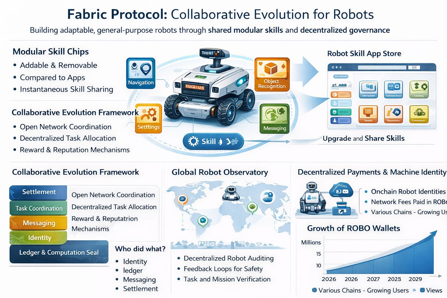The clearest picture of collaborative evolution comes through Fabric’s idea of modular “skill chips.” The whitepaper describes skills as addable and removable modules that are compared to apps and it sketches a “Robot Skill App Store” where skill chips can be shared and removed when they are no longer needed. I read that as a bet on portability where improvements can travel while mistakes can be isolated before they spread.
