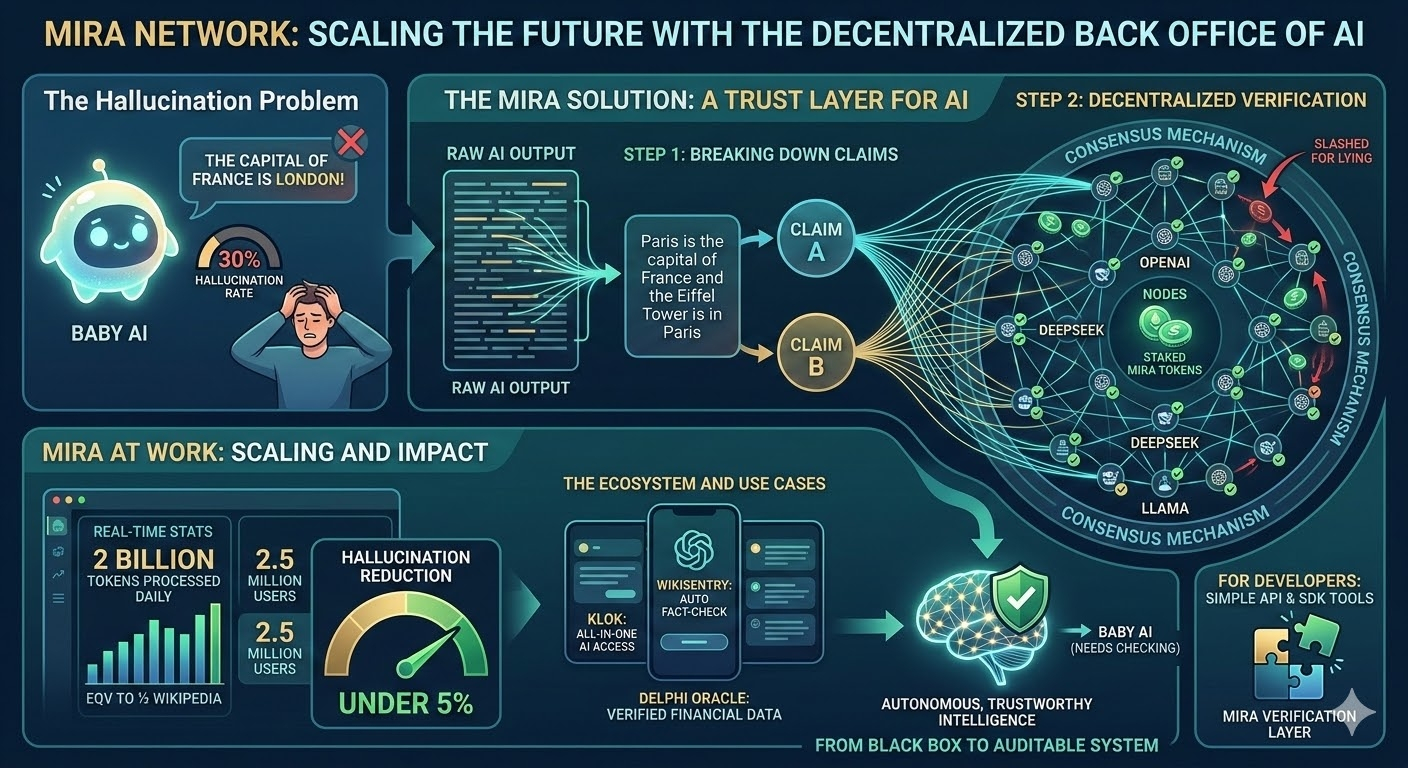 Imagine asking a super-smart assistant a question, but you are never quite sure if the answer is made up. This is the big problem with Artificial Intelligence (AI) today: "hallucinations," where the AI just guesses. Mira Network is building the "back office" to fix this, creating a trust layer for the AI age .