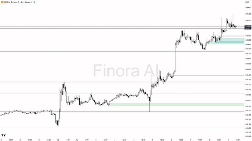 - for a short, if price pushes above 0.05549 and fails with a rejection (wick or bearish engulfing), or if there’s a liquidity sweep above 0.062 and price closes back inside the range, this could signal a reversal short — confirmation would be lower timeframe breakdown and strong bearish candle