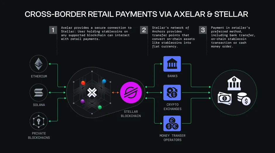 For PG and payment providers, stablecoin payments from various chains can be aggregated through Axelar into a single settlement channel. By automating settlement, redemption, and reporting between PGs, issuers, and banks based on messages, each player can extend the system by sharing Axelar as a common interchain settlement network, rather than operating separate bridges.