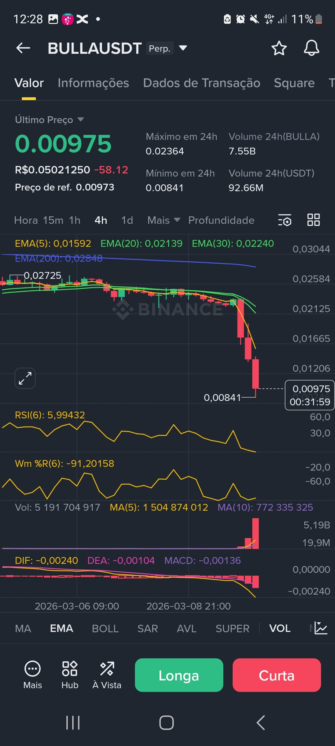 > Atenção: Devido à alta volatilidade e queda de 58%, o risco de liquidação é extremamente elevado. Recomenda-se o uso de margem isolada e entradas fracionadas.
